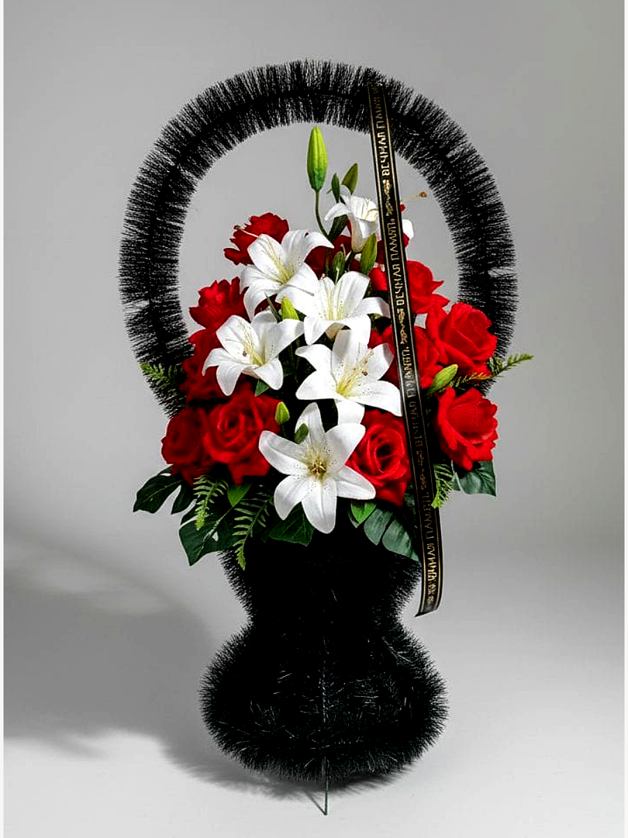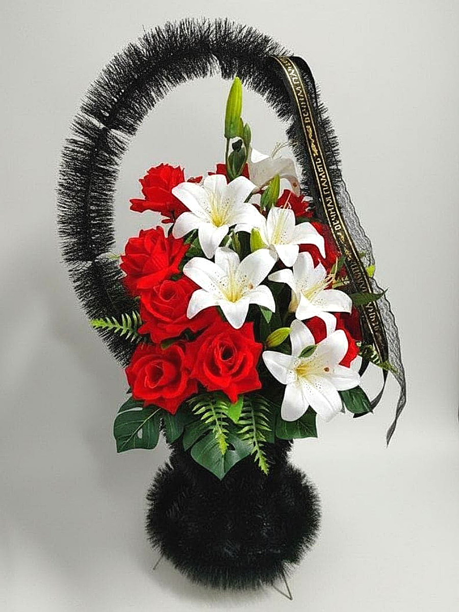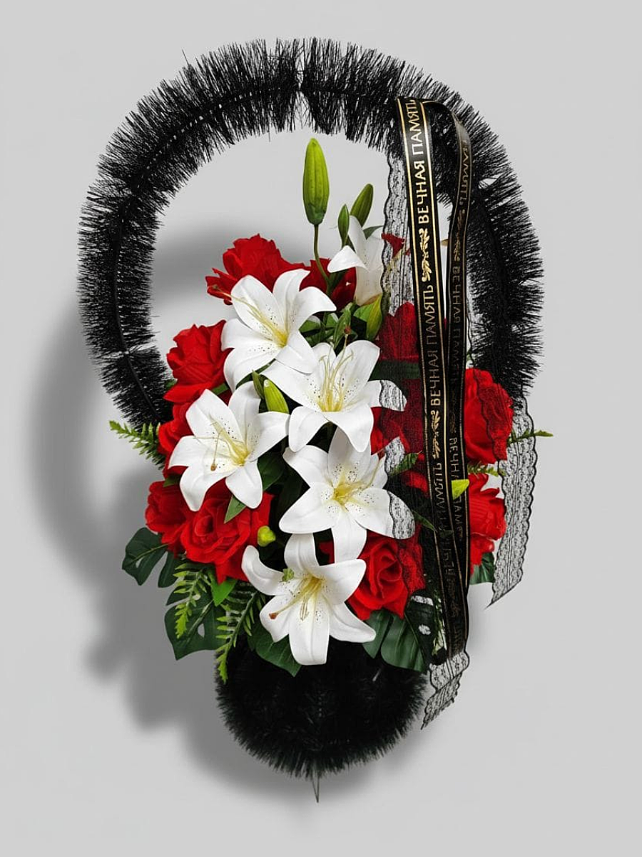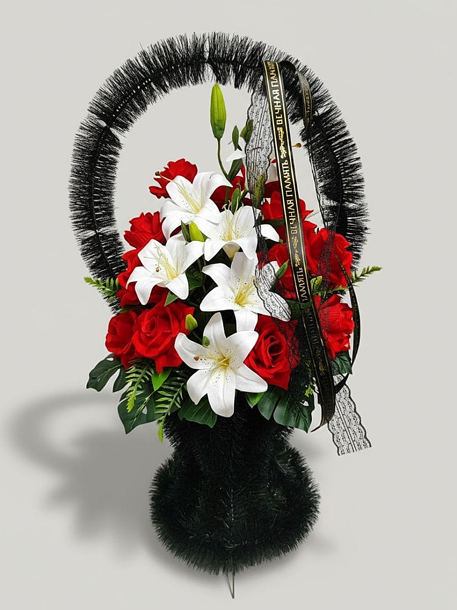 Корзина ритуальная – представляет собой композицию из искусственных цветов и искусственной зелени.