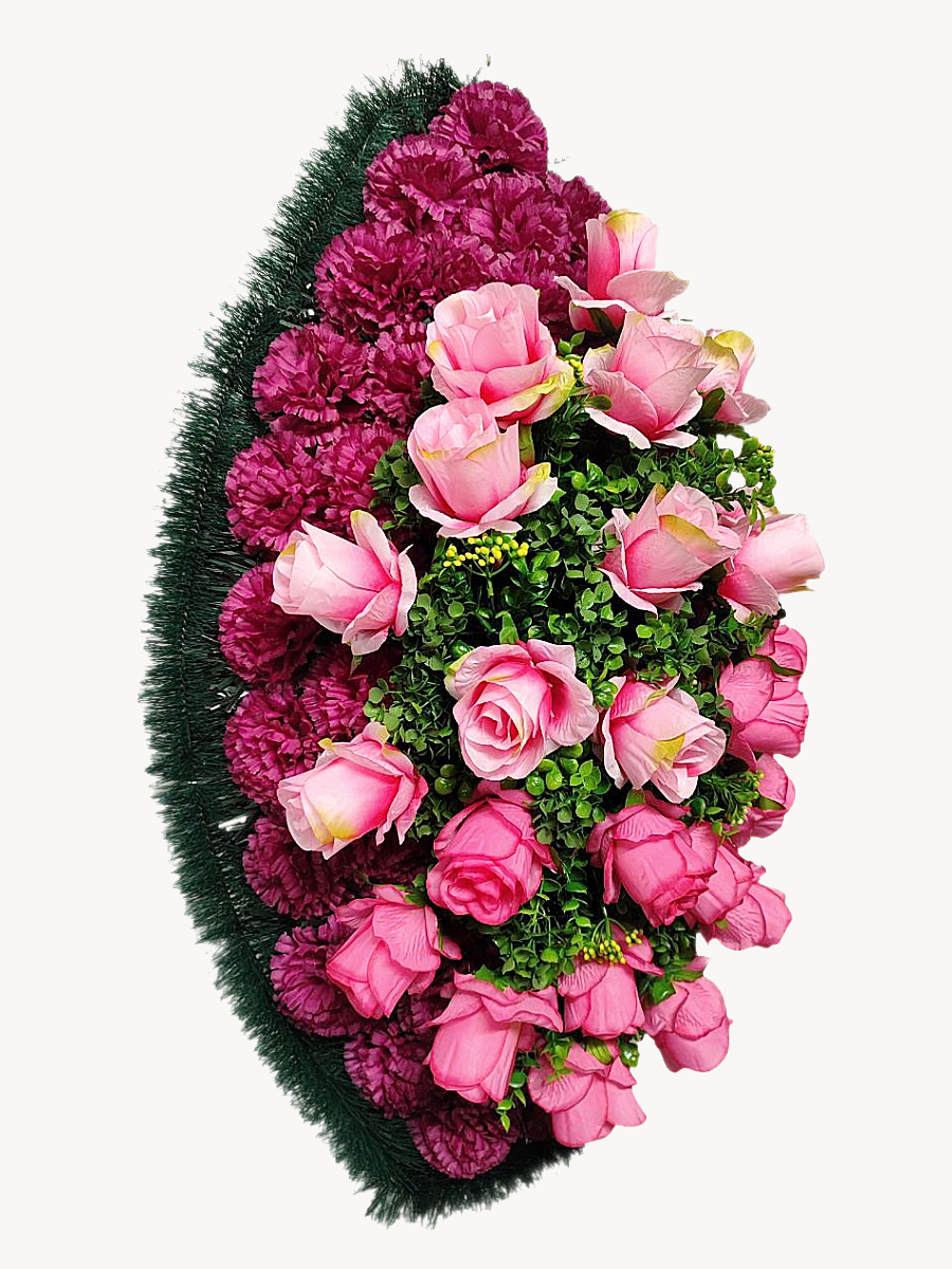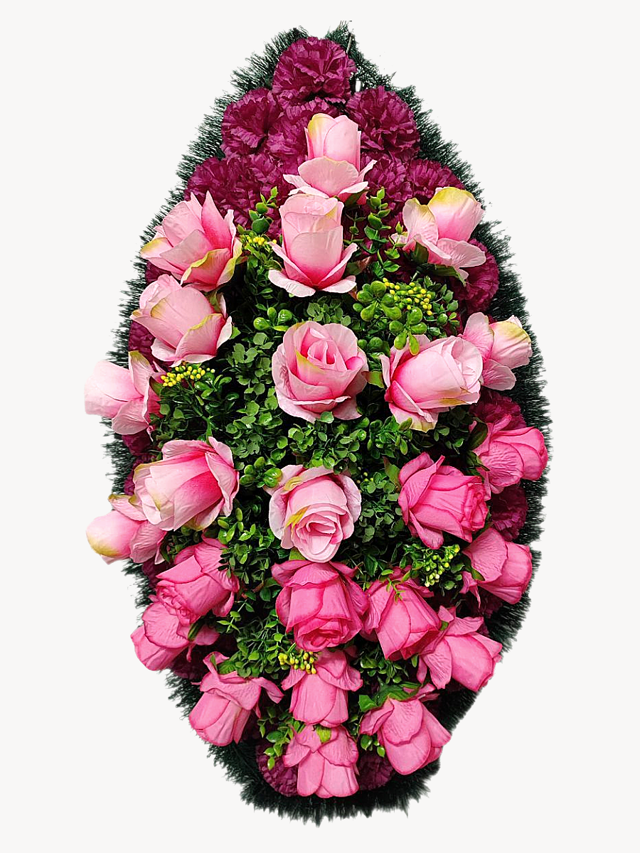 Венок ритуальный – представляет собой композицию из искусственных цветов и искусственной зелени.