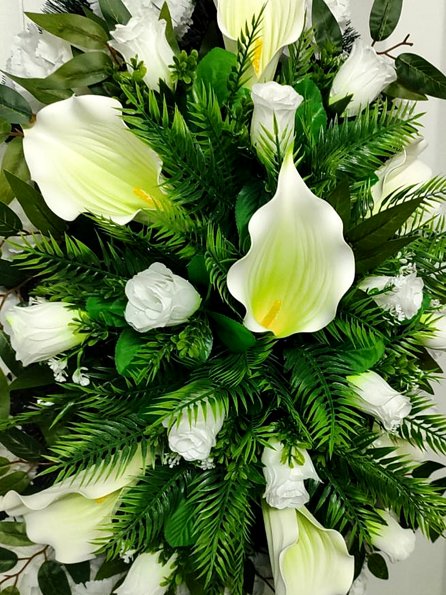 Венок ритуальный – представляет собой композицию из искусственных цветов и искусственной зелени.