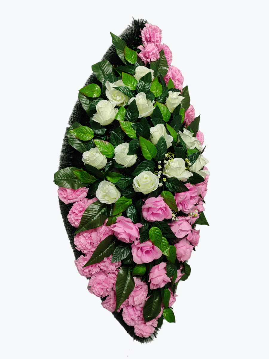 Венок ритуальный – представляет собой композицию из искусственных цветов и искусственной зелени.