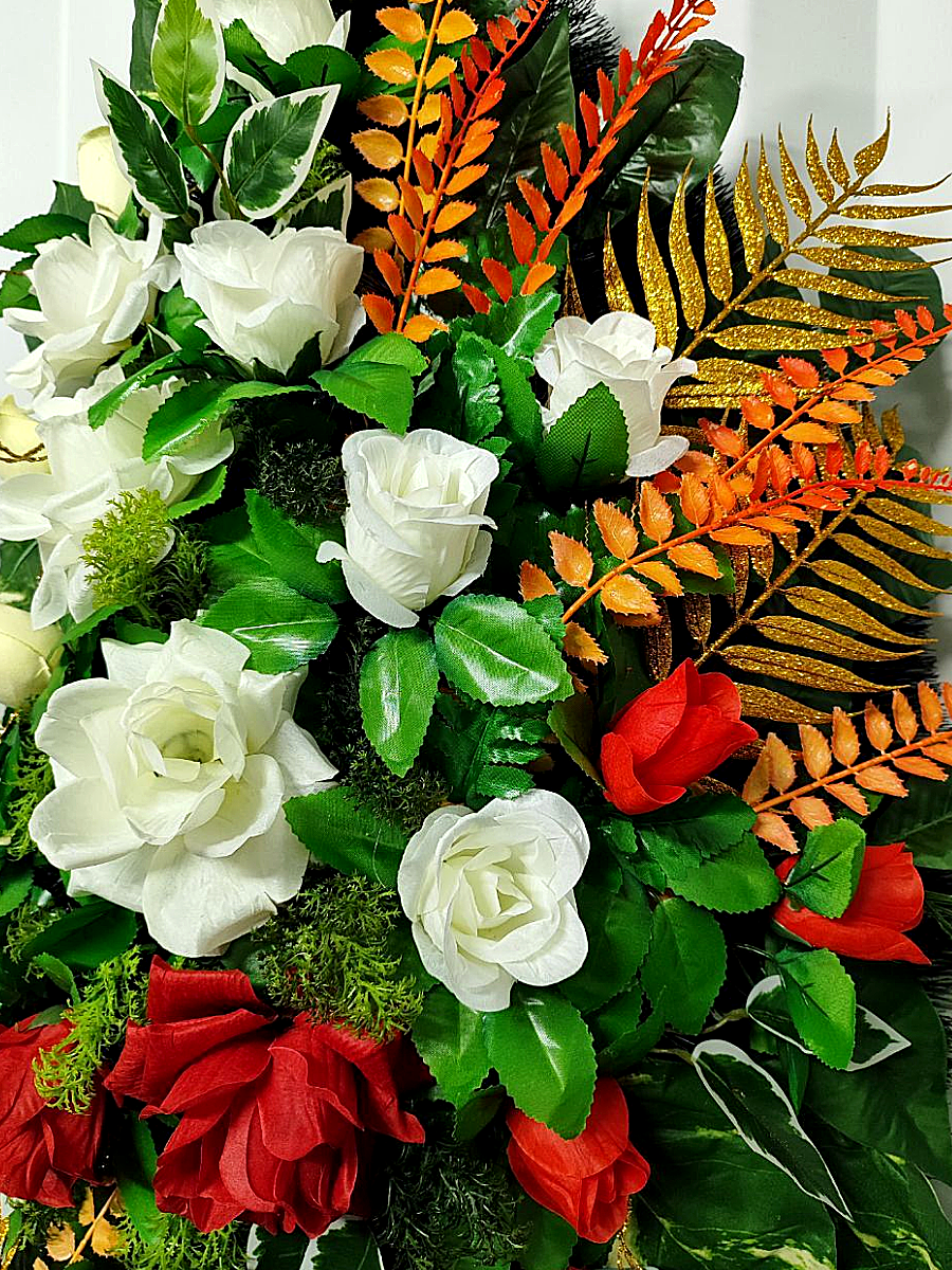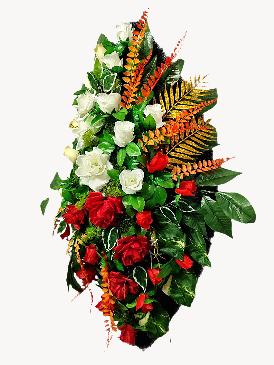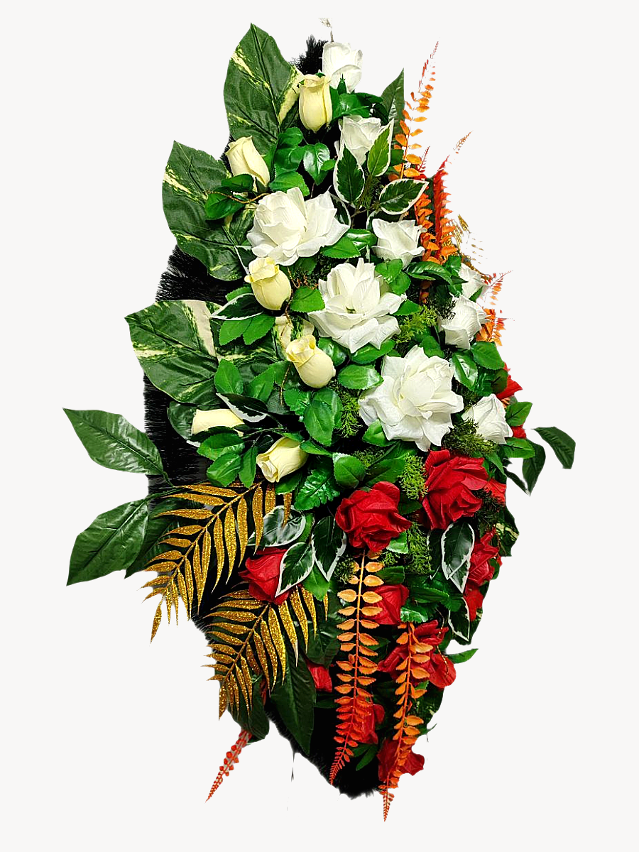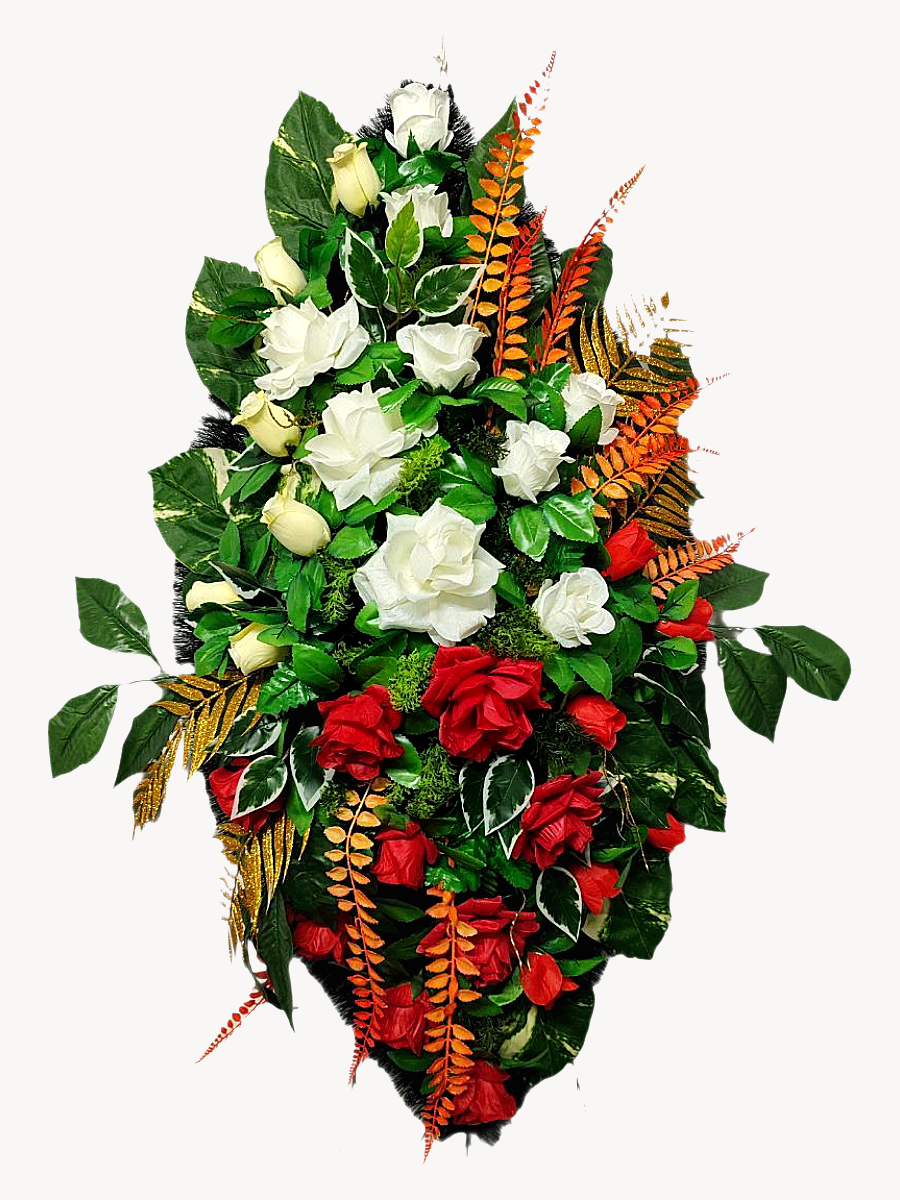 Венок ритуальный – представляет собой композицию из искусственных цветов и искусственной зелени.