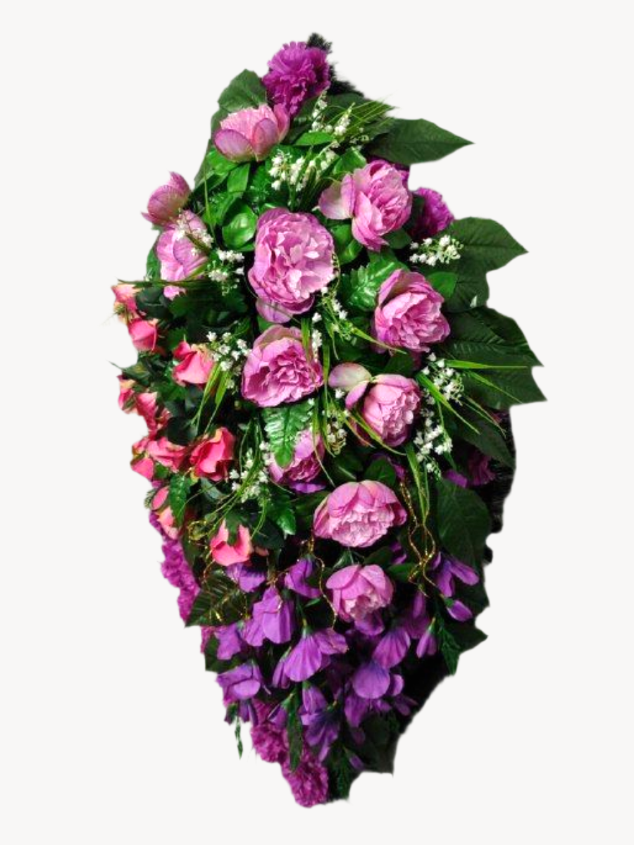 Венок ритуальный – представляет собой композицию из искусственных цветов и искусственной зелени.