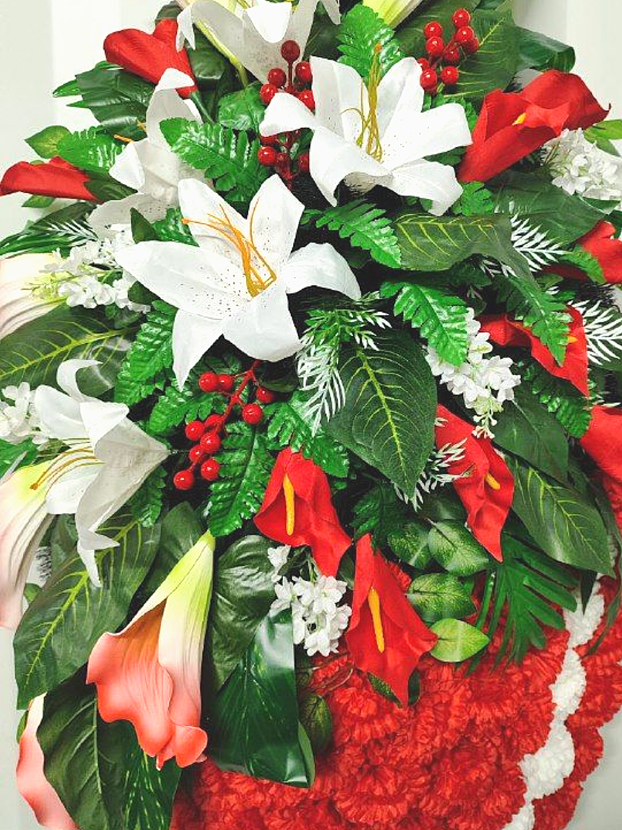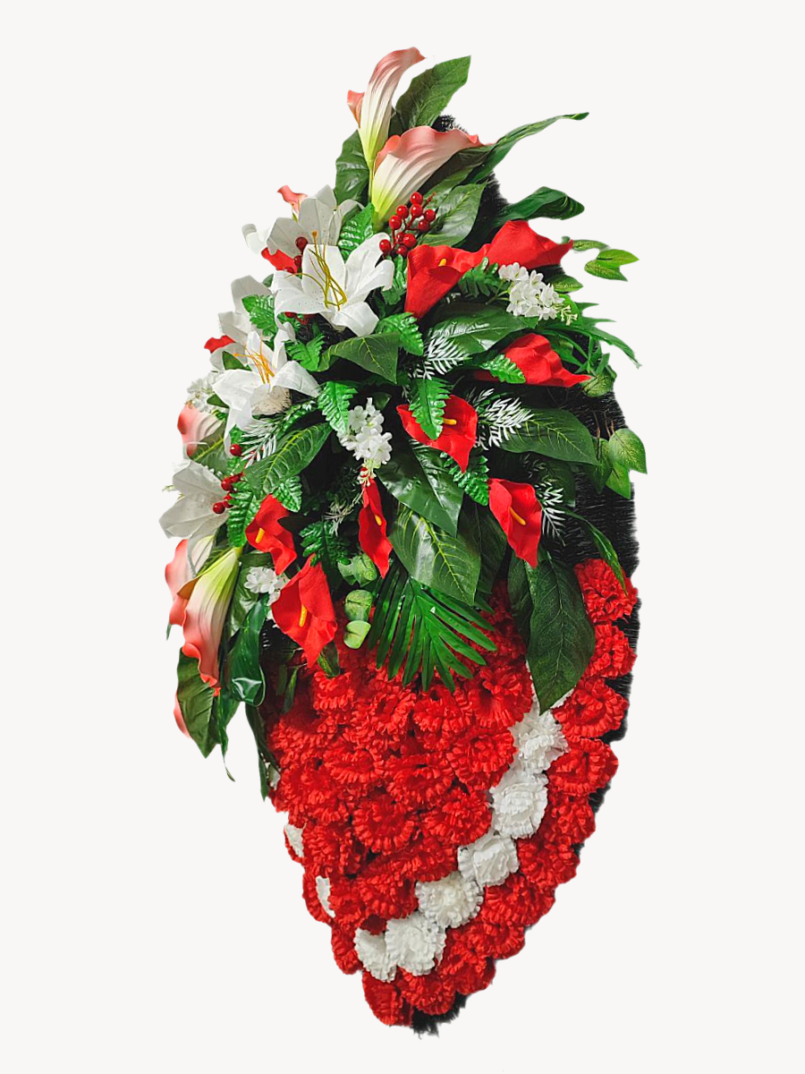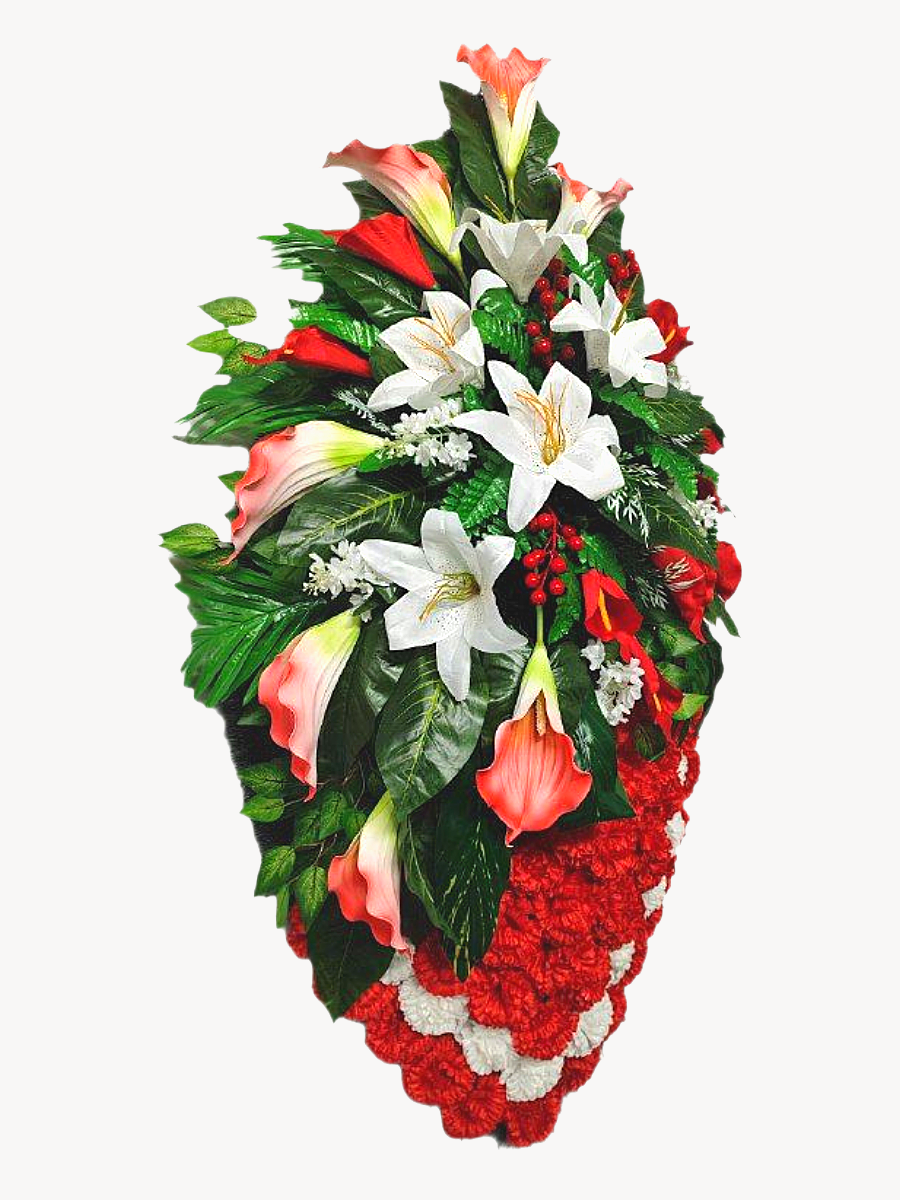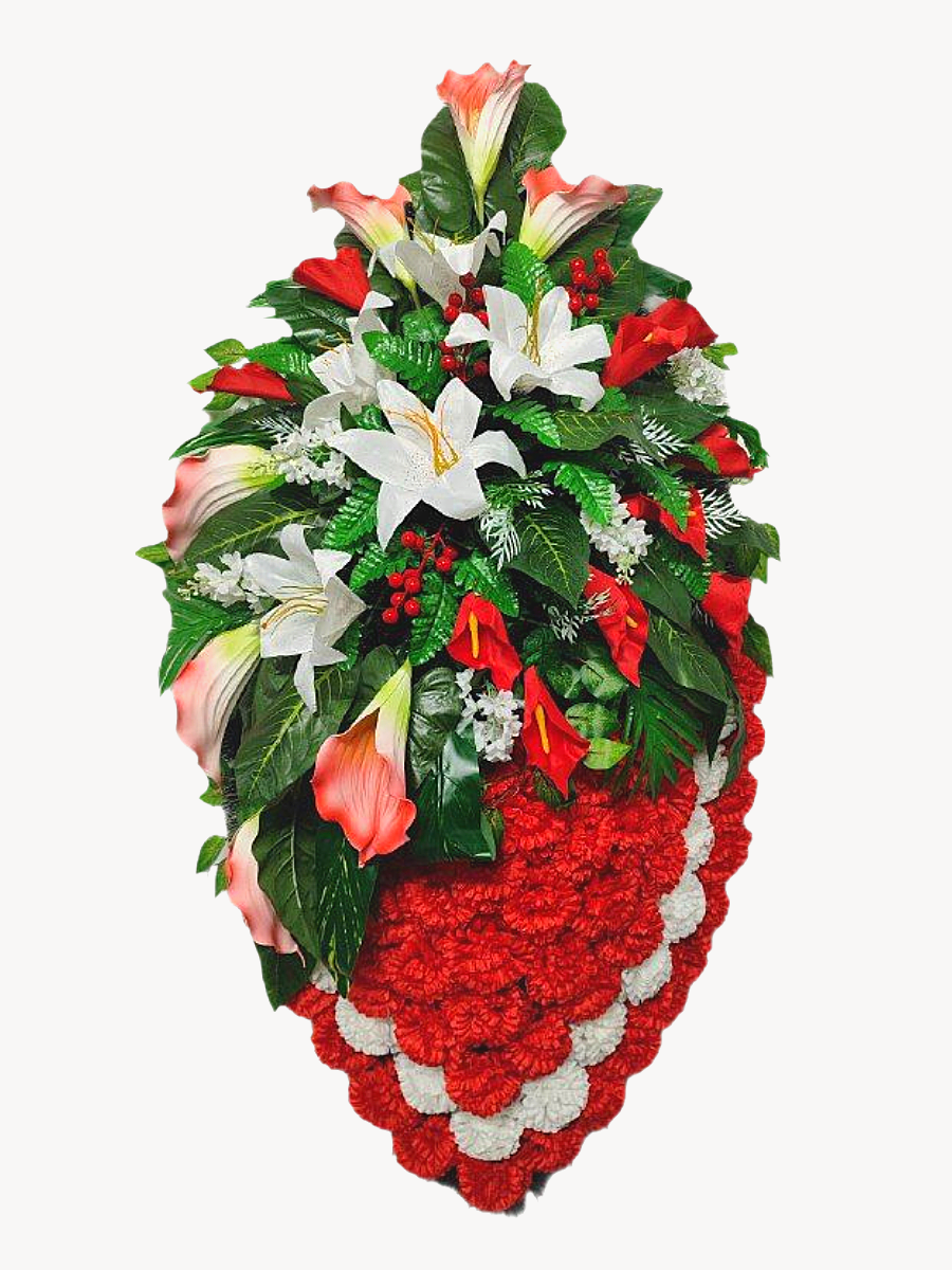 Венок ритуальный – представляет собой композицию из искусственных цветов и искусственной зелени.