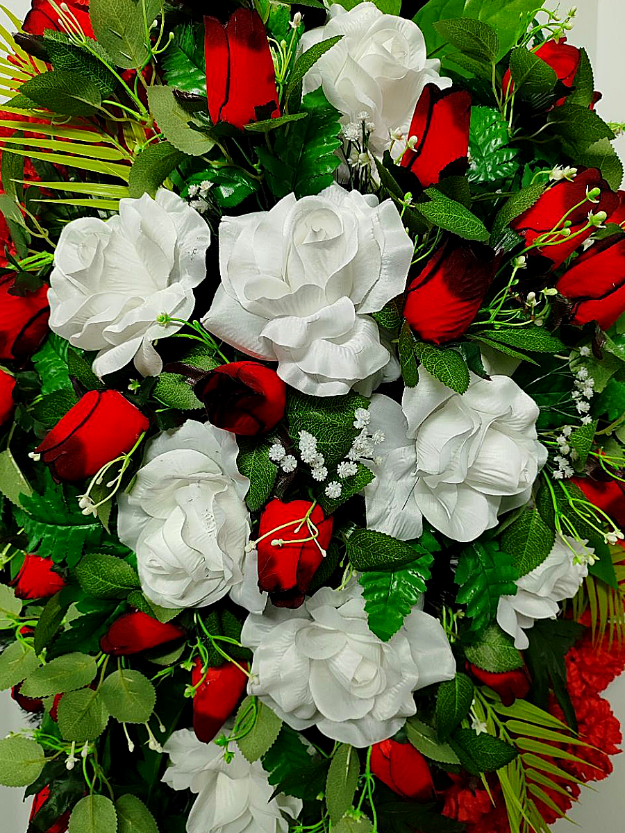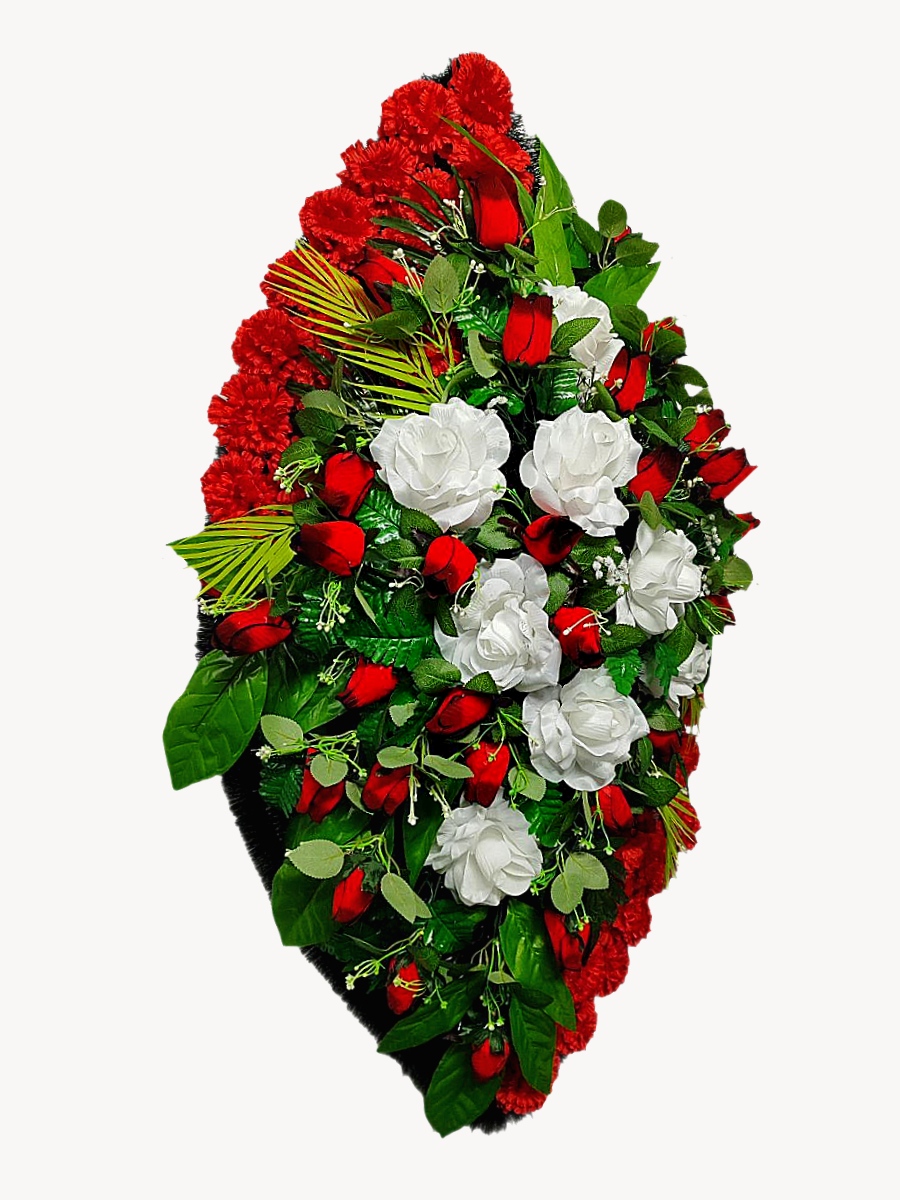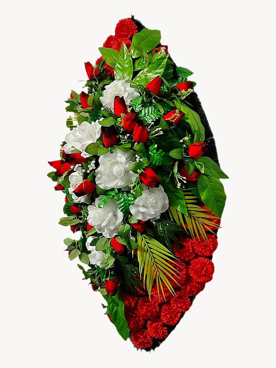 Венок ритуальный – представляет собой композицию из искусственных цветов и искусственной зелени.