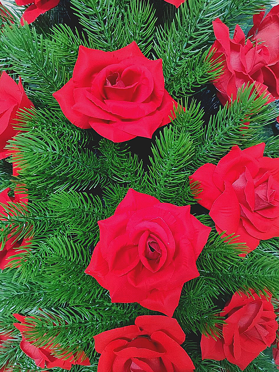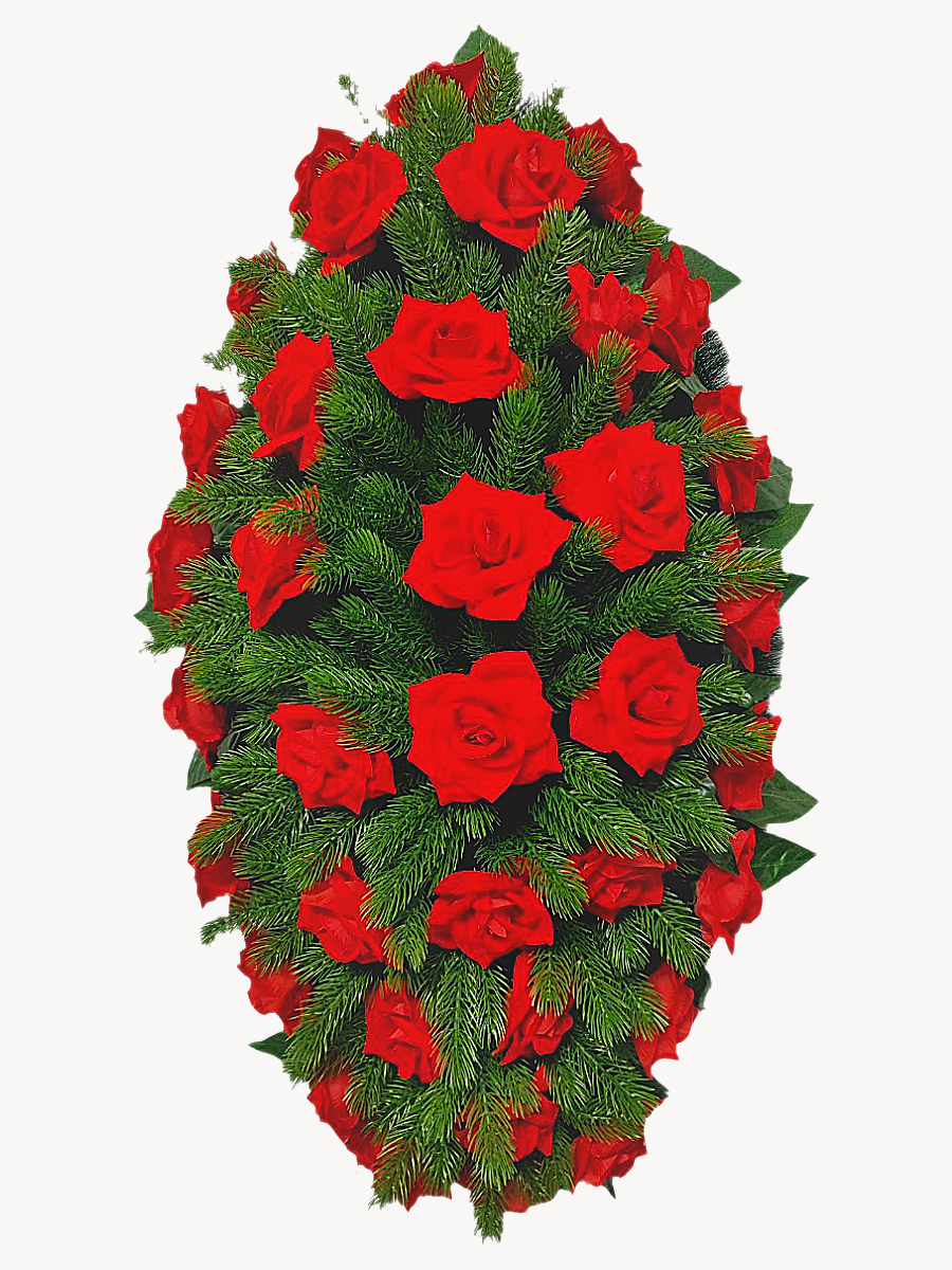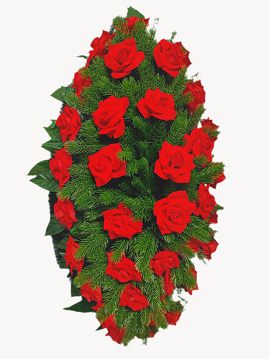 Венок ритуальный – представляет собой композицию из искусственных цветов и искусственной зелени.