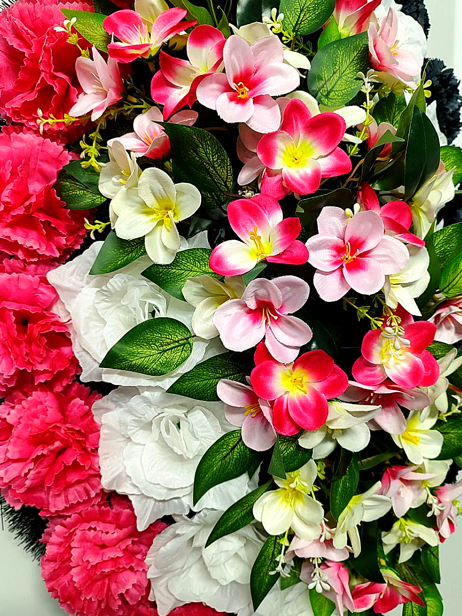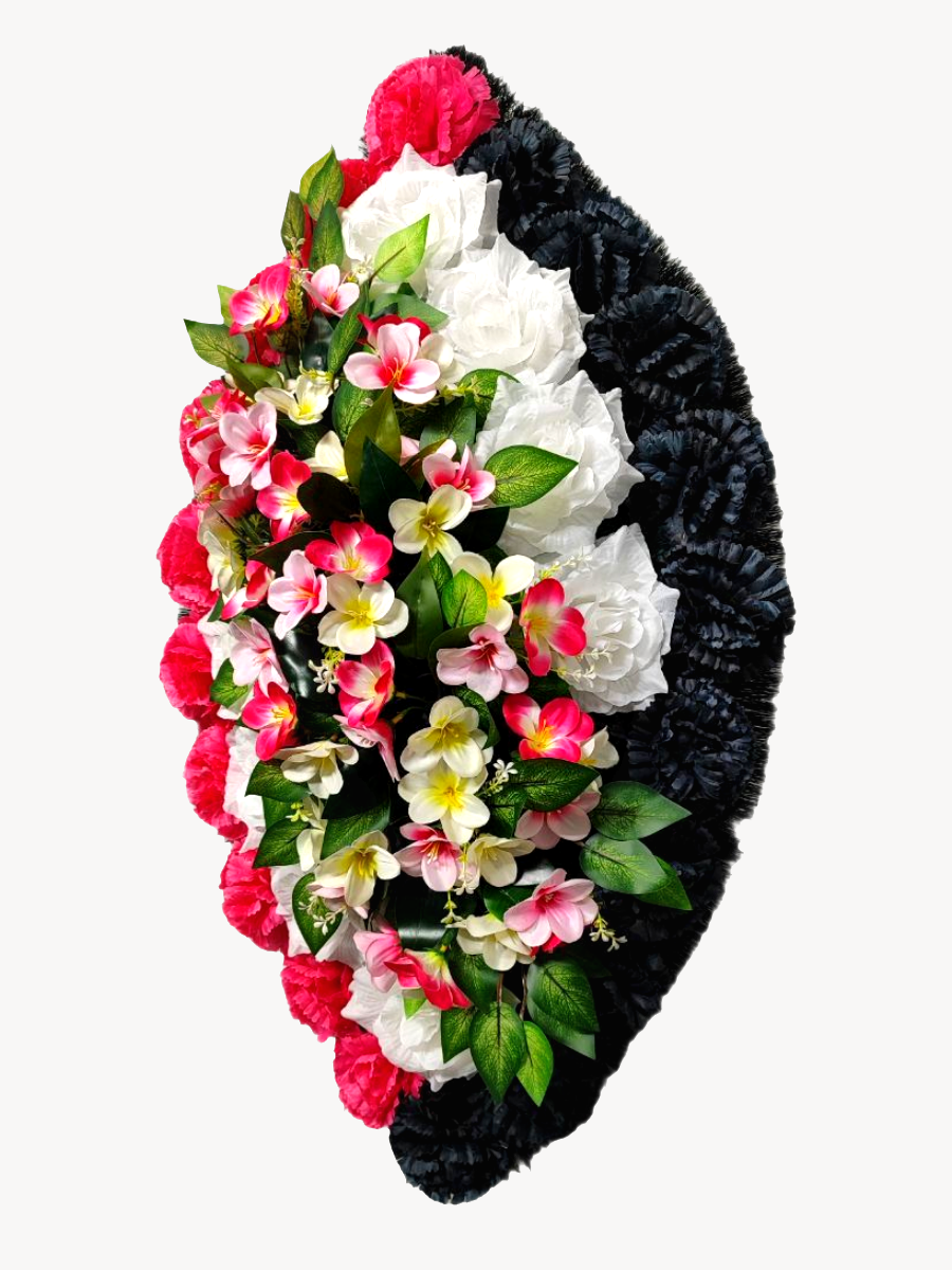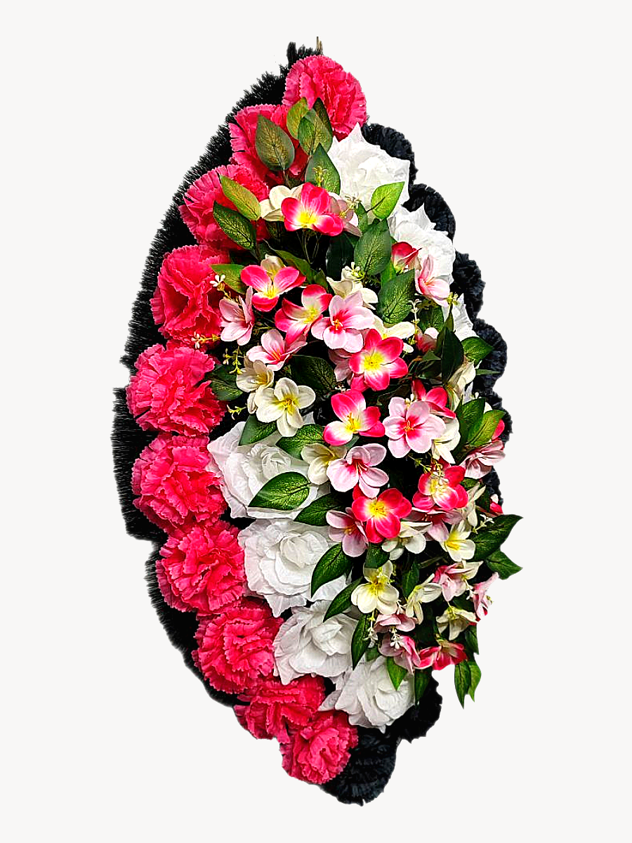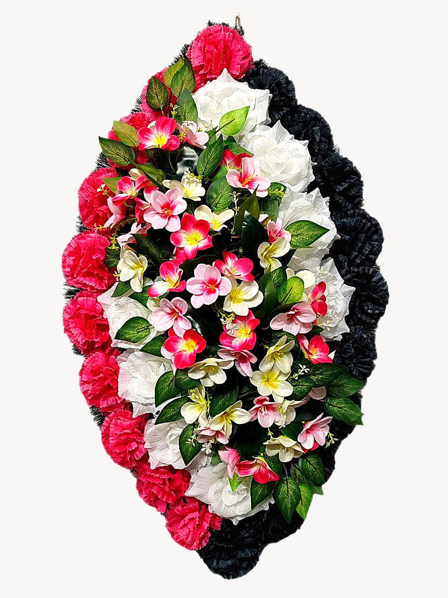 Венок ритуальный – представляет собой композицию из искусственных цветов и искусственной зелени.