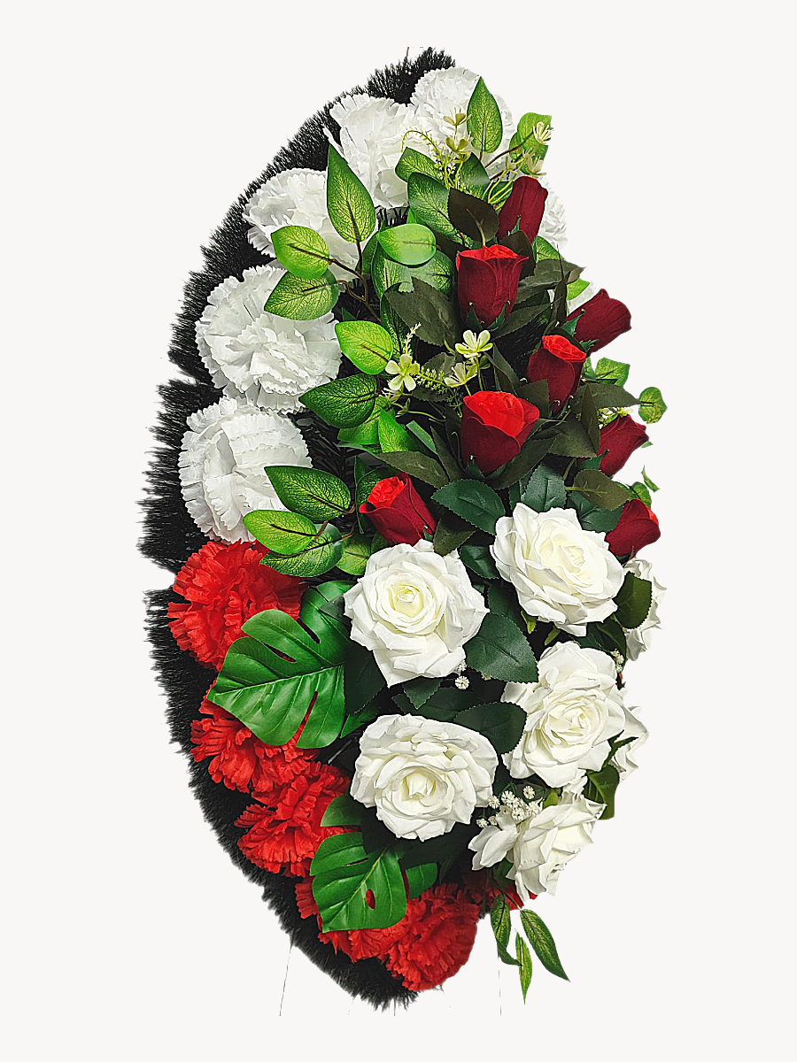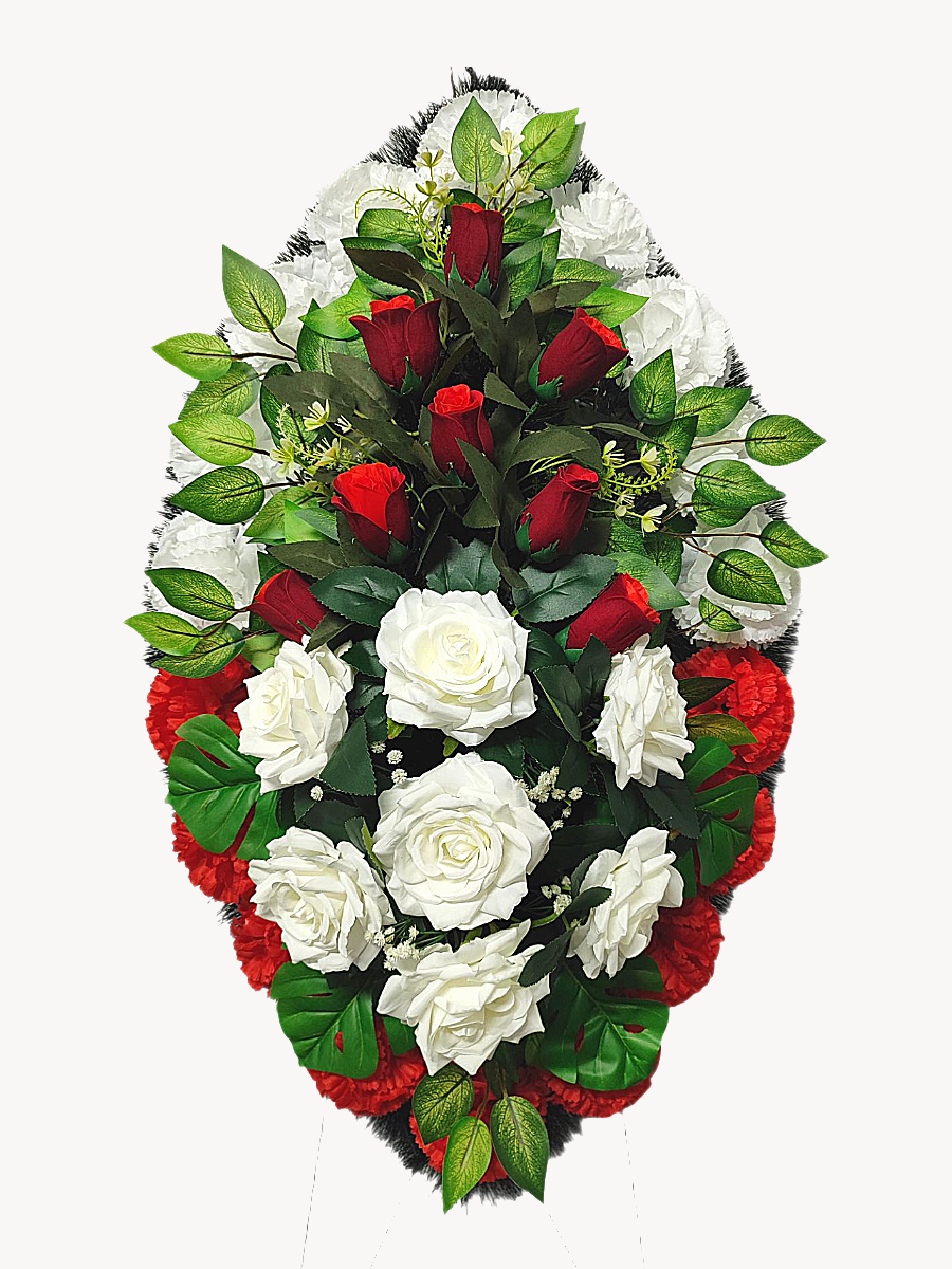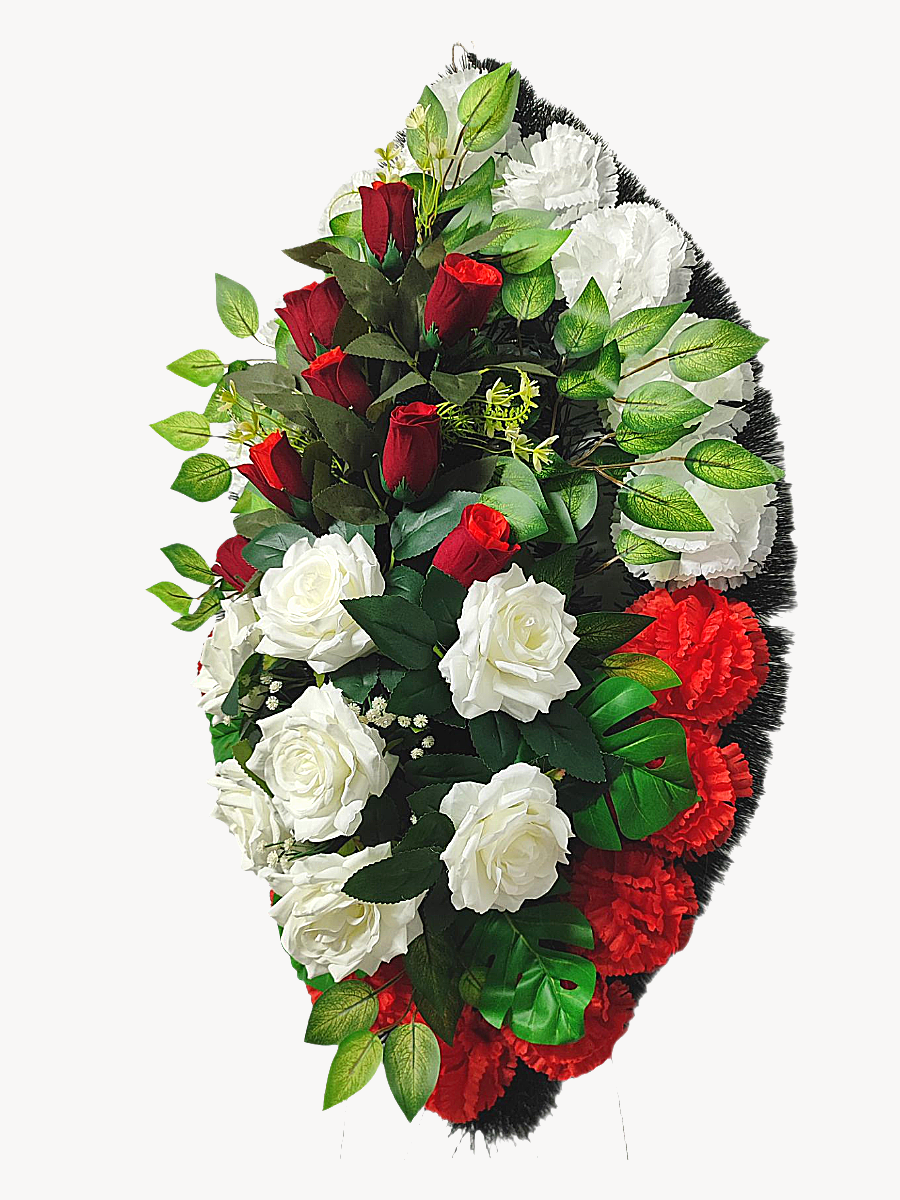 Венок ритуальный – представляет собой композицию из искусственных цветов и искусственной зелени.